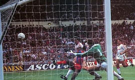 Wembley's first all-seater crowd for the best-known prize in the game witnessed a thriller. Palace led through Gary O'Reilly, who got his head to a free kick which appeared to hit Gary Pallister en-route for goal, then Bryan Robson scored with a near-post header helped by a deflection from Palace full-back John Pemberton. Once level, United pressed forward and more chances came both before and after Mark Hughes scored his first goal of the Cup campaign, slamming in a low, right-footed volley in the 62nd minute.