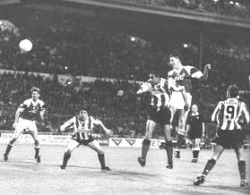 Andy Linighan headed Arsenal's winner against Sheffield Wednesday with less than a minute of extra‑time left in the 1993 final replay ‑ a goal which spared the Cup the indignity of its first penalty shoot‑out at Wembley. Defender Linighan rose high to a corner by Paul Merson, a theatrical last act on a night of glistening puddles, to give Arsenal the distinction of being the first club to win both FA Cup and League Cup in one season. Wednesday were their opponents in both finals.