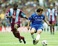 There was certainly a marked difference between the two starting line-ups. While Villa's included eight Englishmen, there was only one, captain Dennis Wise, in the Chelsea ranks. The London club compensated to some extent by naming three others, Jody Morris, John Terry and Jon Harley, as substitutes on a bench that, rather surprisingly, did not contain a fourth, £10 million striker Chris Sutton.