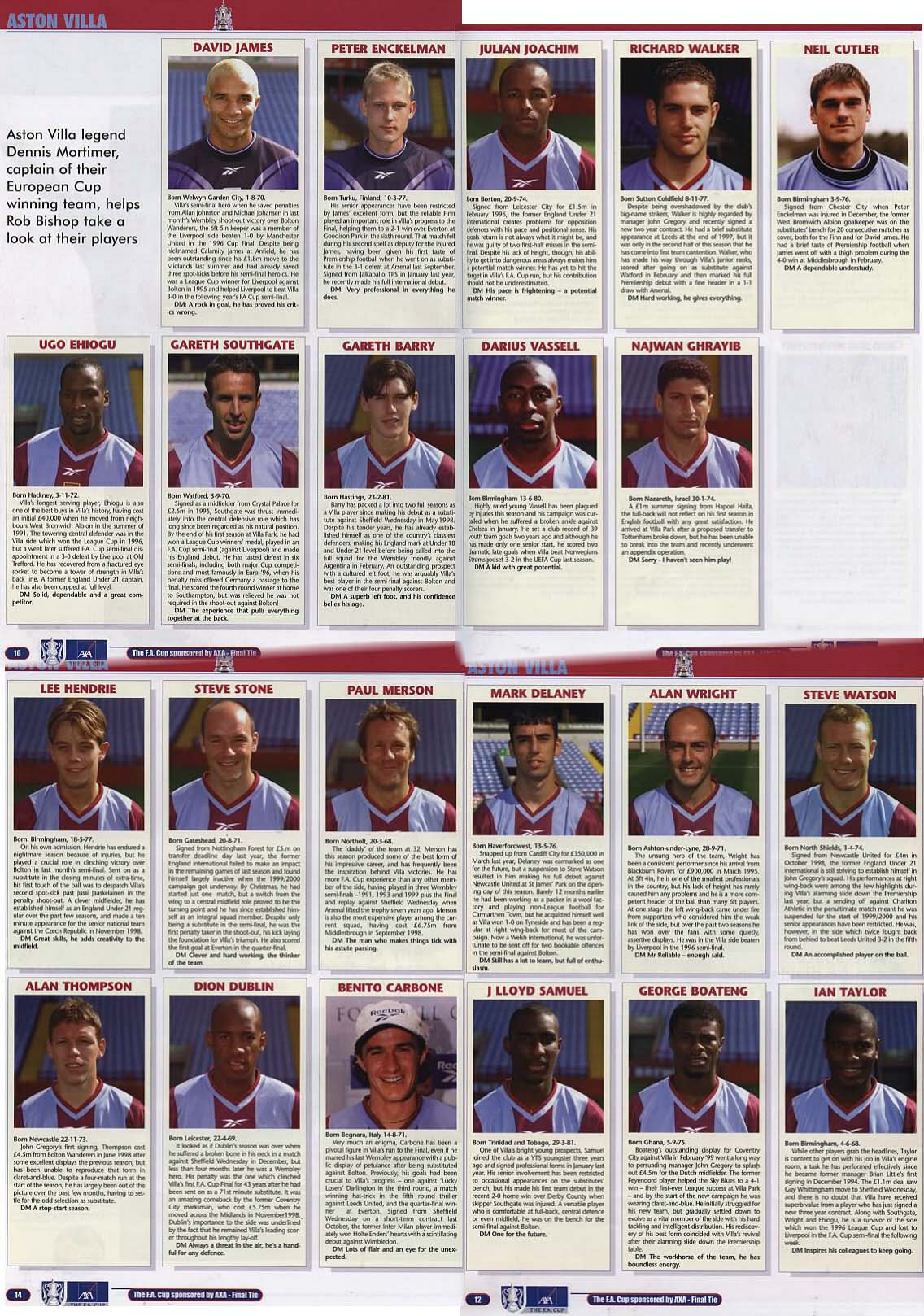 Villa manager John Gregory rang the changes in the last 12 minutes as his team searched desperately for an eqauliser. But the introduction of Steve Stone, Julian Joachim and Lee Hendrie for Taylor, Carbone and Wright yielded just one more scoring chance, Ehiogu heading the ball over the crossbar when he needed to direct it across goal to the better-placed Dion Dublin.